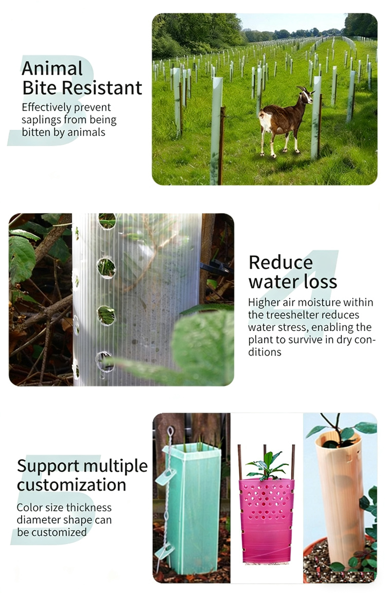 1. Using pp young tree protectors, it can keep warm, and the wind and rain will not damage the seedlings.